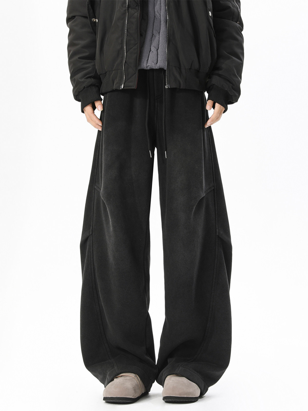 American-Style Fleece-Lined Casual Pants for Men, Autumn and Winter Heavy Thickened Sweatpants, Men's Loose Straight-Leg Drapey Wide-Leg Sports Pants