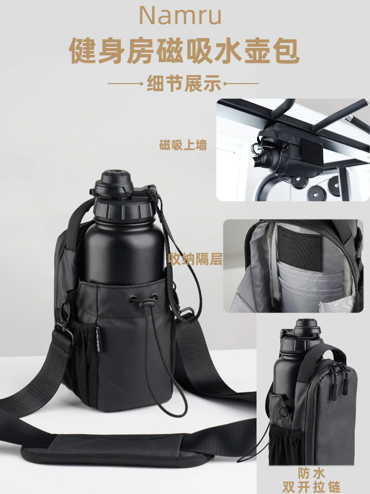 American Style Gym Bag with Magnetic Water Bottle Holder, Integrated Phone and Water Bottle Pouch, Crossbody Sports Bag
