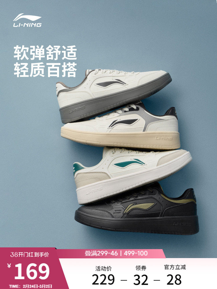 Li-Ning Sneakers for Men, Soft-Soled Black Casual Shoes, Comfortable, Soft and Versatile, White Sneakers, Women's Shoes, Flat Sports Shoes