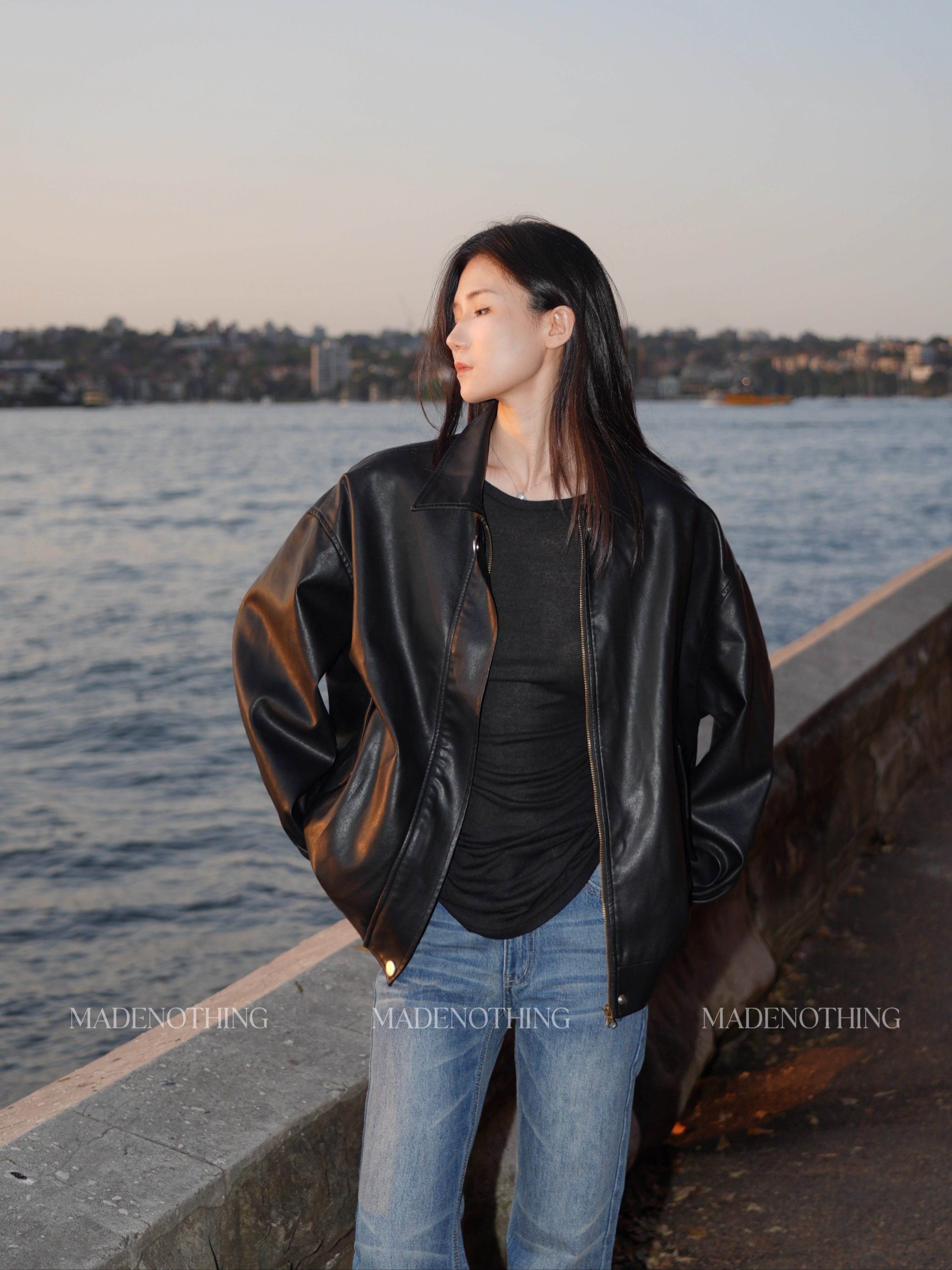 Made Nothing Leather Jacket 001 Autumn and Winter Retro High-End Classic Oversized Loose Jacket for Women
