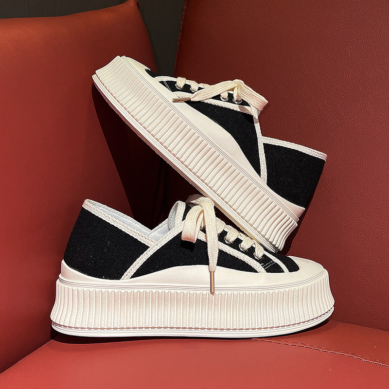 Hong Kong Canvas Shoes for Women, Spring and Autumn Thin Style, Height-Increasing Platform Shoes, Slip-On, Dual-Wear, Lazy Casual Biscuit Shoes, Beggar Shoes