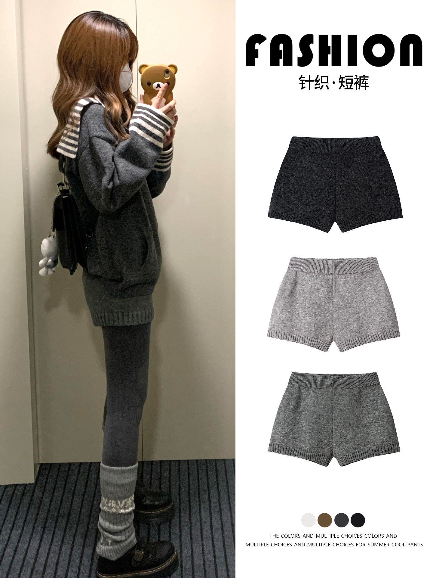 Dark Gray Shorts for Women 2025 New Autumn and Winter Knitted Petite Slimming Outerwear Casual Simple Sweater Pants