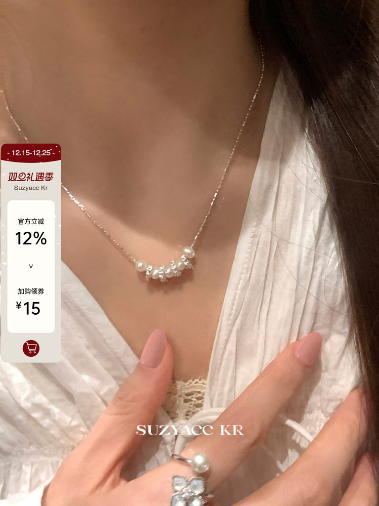 Suzyacc French Minimalist Freshwater Pearl Sterling Silver Necklace Accessible Luxury Niche Elegant High-End Necklace