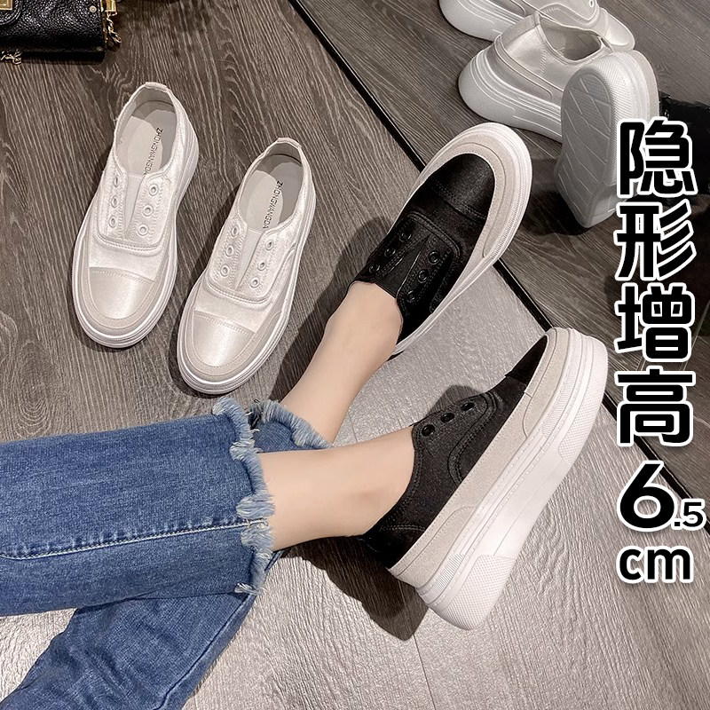 Hong Kong Satin Platform Loafers for Women 2025 Spring Trendy Slip-On Shoes White Shoes Niche Thick-Soled Trendy Slip-Ons