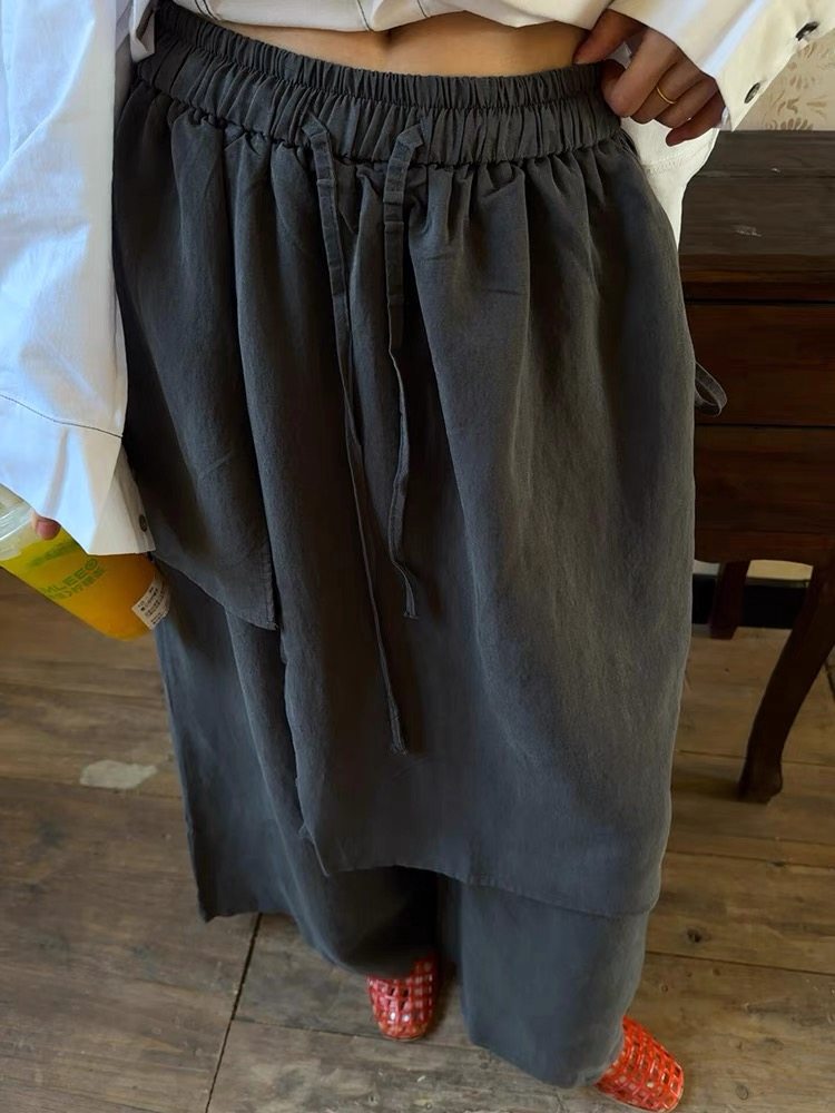 Awesome Stuff! Super Cool! Dark Gray Irregular Casual Pants for Women, Spring Elastic Waist, Loose Drawstring Wide-Leg Pants Skirt