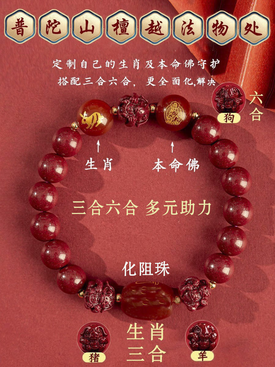 Putuo Mountain Cinnabar Bracelet for the Year of the Horse, 2026 Zodiac Year Bracelet, Protective Bracelet, Official Flagship Store Genuine Red String