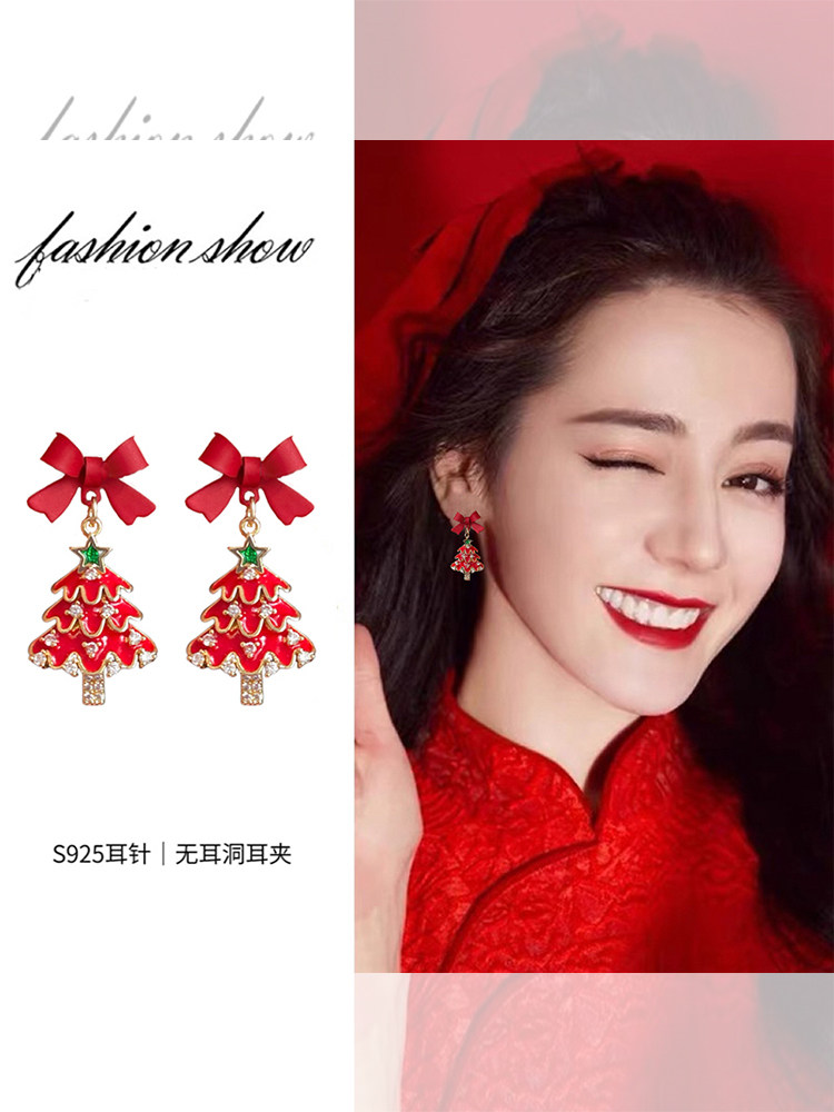 Christmas-Themed Atmosphere Series Earrings for Women, Unique Ear Clips, No Piercing Needed, Trendy Internet Celebrity Style, Niche and Elegant Earrings