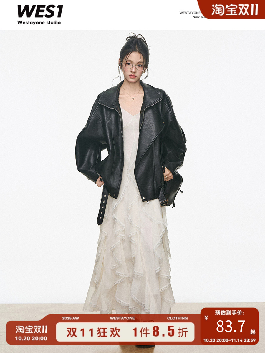 Westayone Petite High-End Black Leather Jacket for Women, Short Style 2025 New Model Brown + Dress
