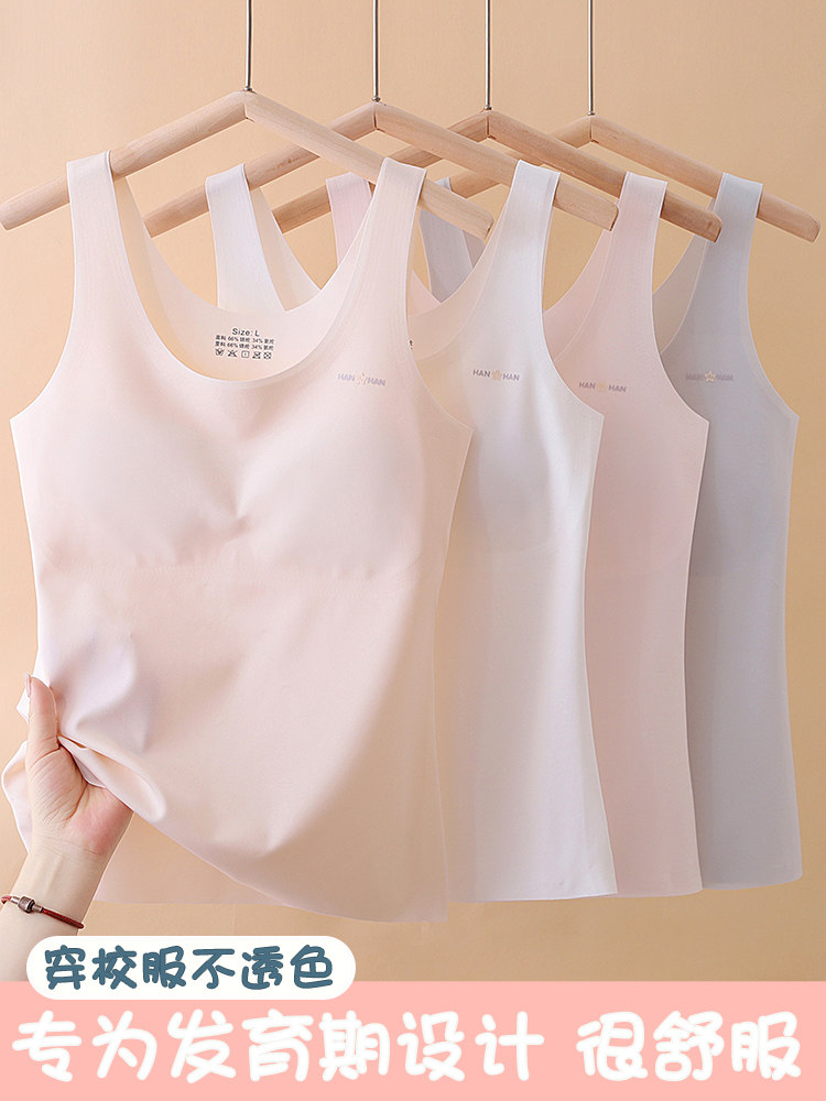 Fixed Chest Pad Girls' Developmental Period Underwear, Long Vest for Girls in the Second and Third Stages of Development, Inner Wear Bra for Older Children and Junior High School Students