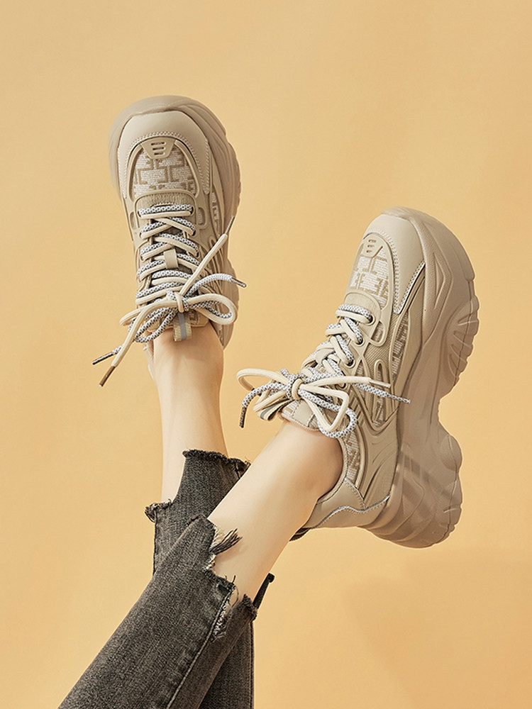 Hong Kong 2025 Spring and Autumn New Style Dad Shoes for Women ins Super Popular, Makes Feet Look Smaller, Thick Sole, Versatile Platform Sneakers, Trendy
