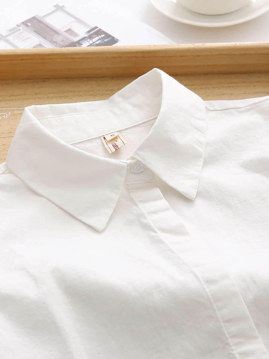 2025 Autumn New Student White Pure Cotton Fleece-Lined Shirt for Women, Long Sleeve Base Layer Shirt for Petite Figures