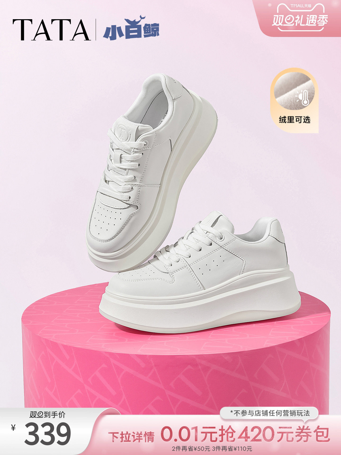 Sun Leyan's Same Style Tata Women's Shoes, Little White Whale Shoes, Thick-Soled Fleece-Lined Sneakers, Height-Increasing Casual Shoes