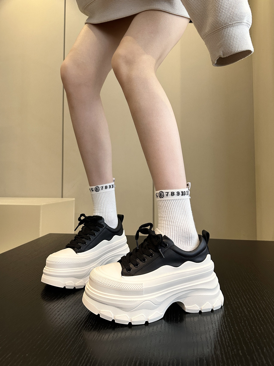 A Must-Have for Petite People~ New Genuine Leather Platform Shoes for Women, Lightweight White Sneakers That Increase Height and Make You Look Slimmer, Casual Shoes