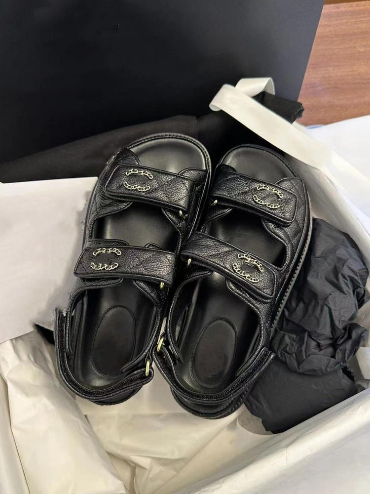 Chanel-Style Velcro Sandals for Women, Spring and Autumn 2025, Thick-Soled, Height-Increasing, Casual, Versatile, Fashionable, Open-Toe Flat Sandals for Women