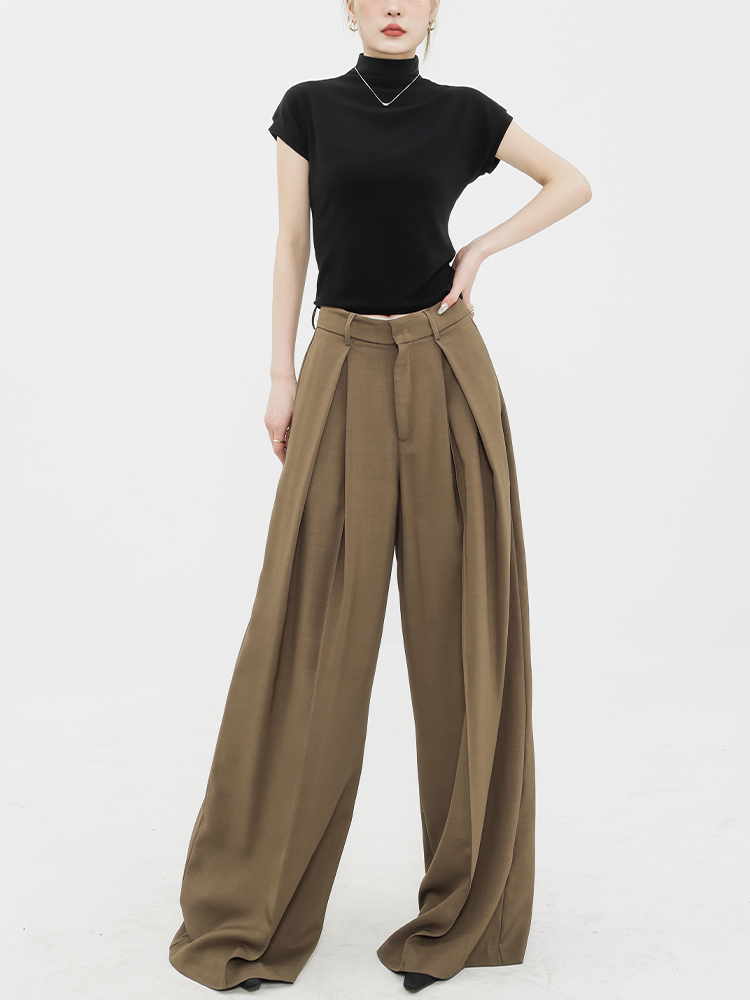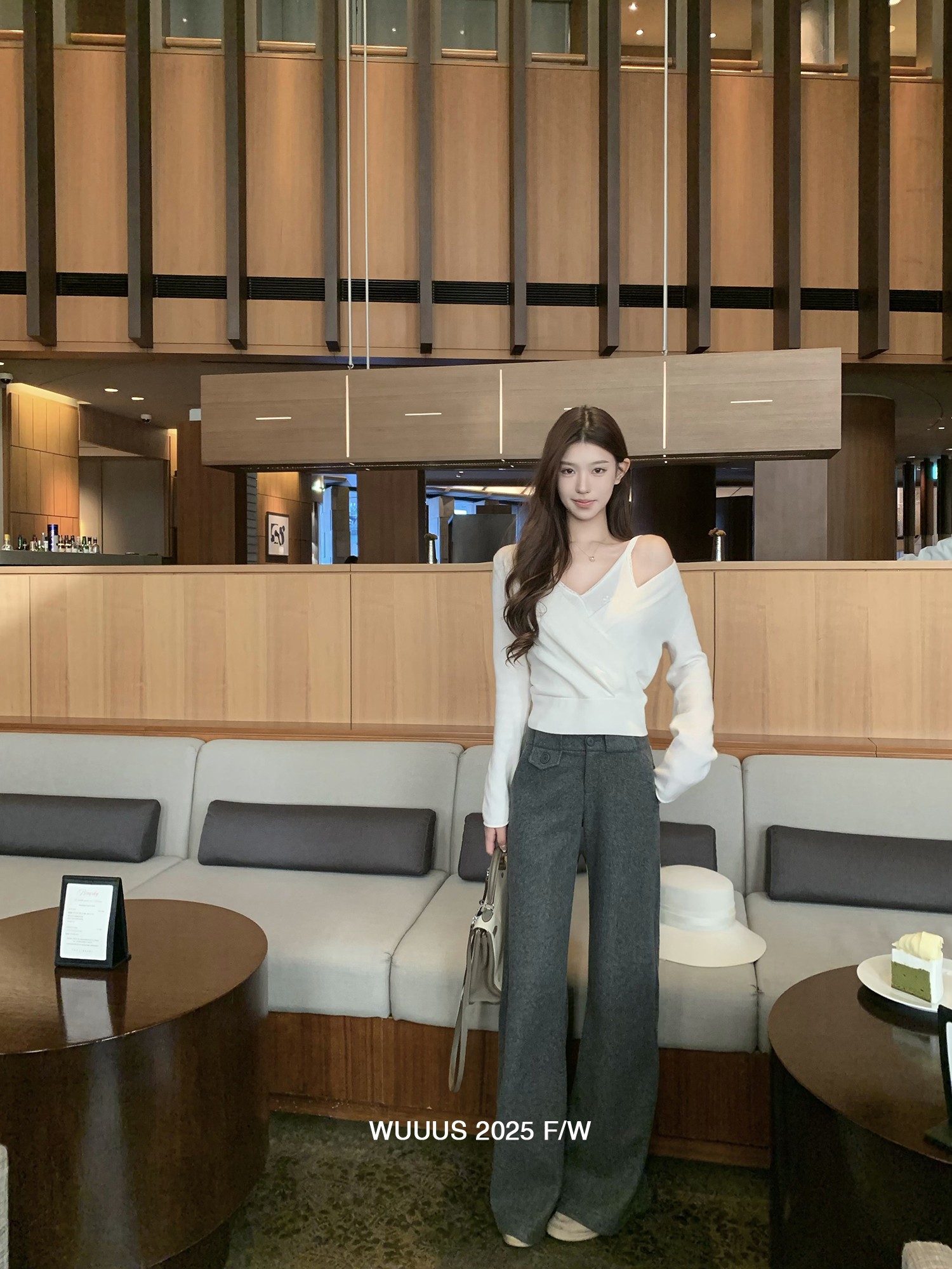【Fart Shop】Nine-Point Trousers, High-Waisted, Light Business Style, Slightly Flared, Waist-Cinching, Solid Color Casual Long Pants for Women
