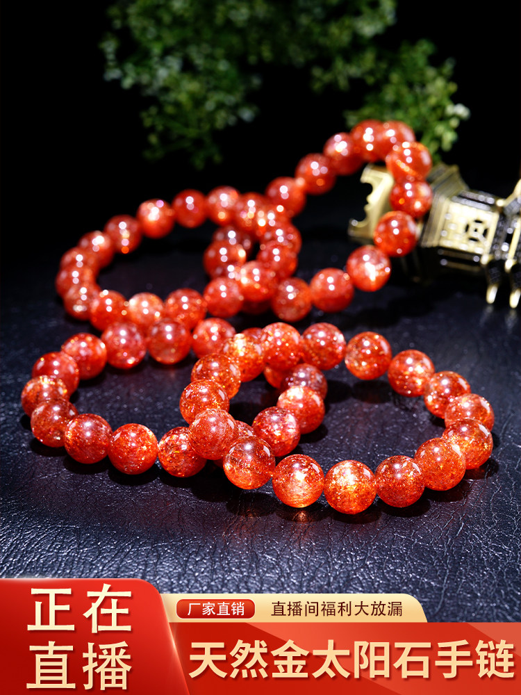 Zhonglong Jewelry Collection Grade Gold Sun Bracelet Orange Red Cat's Eye Gold Sand Crystal Sunstone Women's Gold Strawberry Crystal