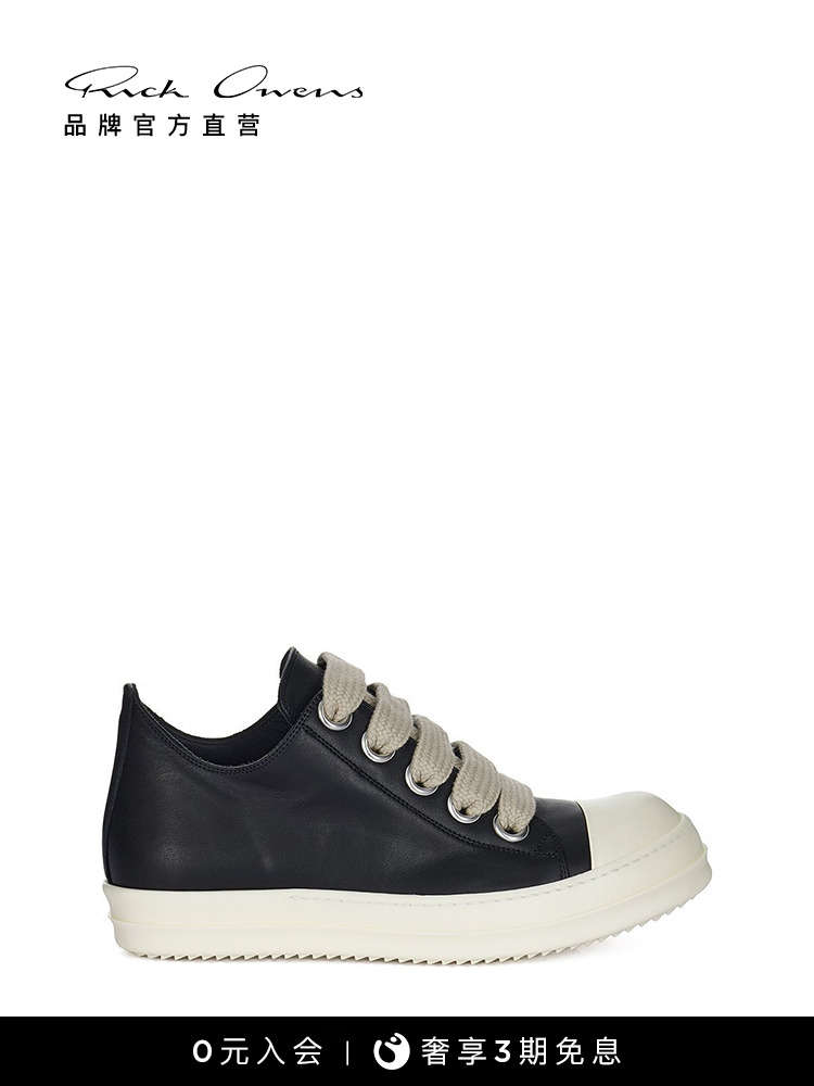 【Autumn/Winter New Arrivals】Rick Owens 25 Autumn/Winter Men's Black Thick Laced Leather Low-Top Sneakers