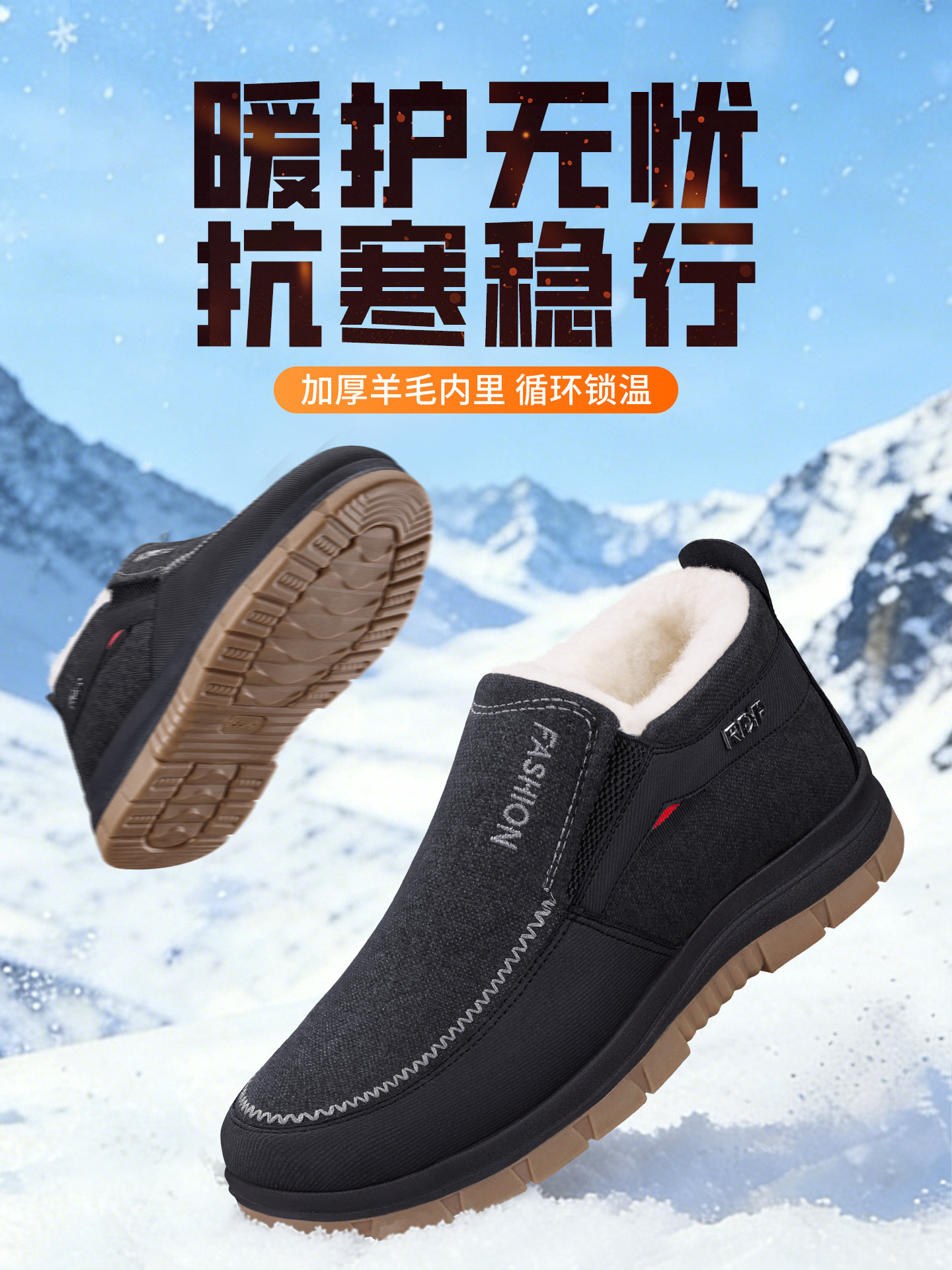 Woodpecker Leather Shoes Men's Genuine Leather New Winter Fleece-Lined Cotton Shoes Men's Business Casual Non-Slip Middle-Aged and Elderly Dad Shoes