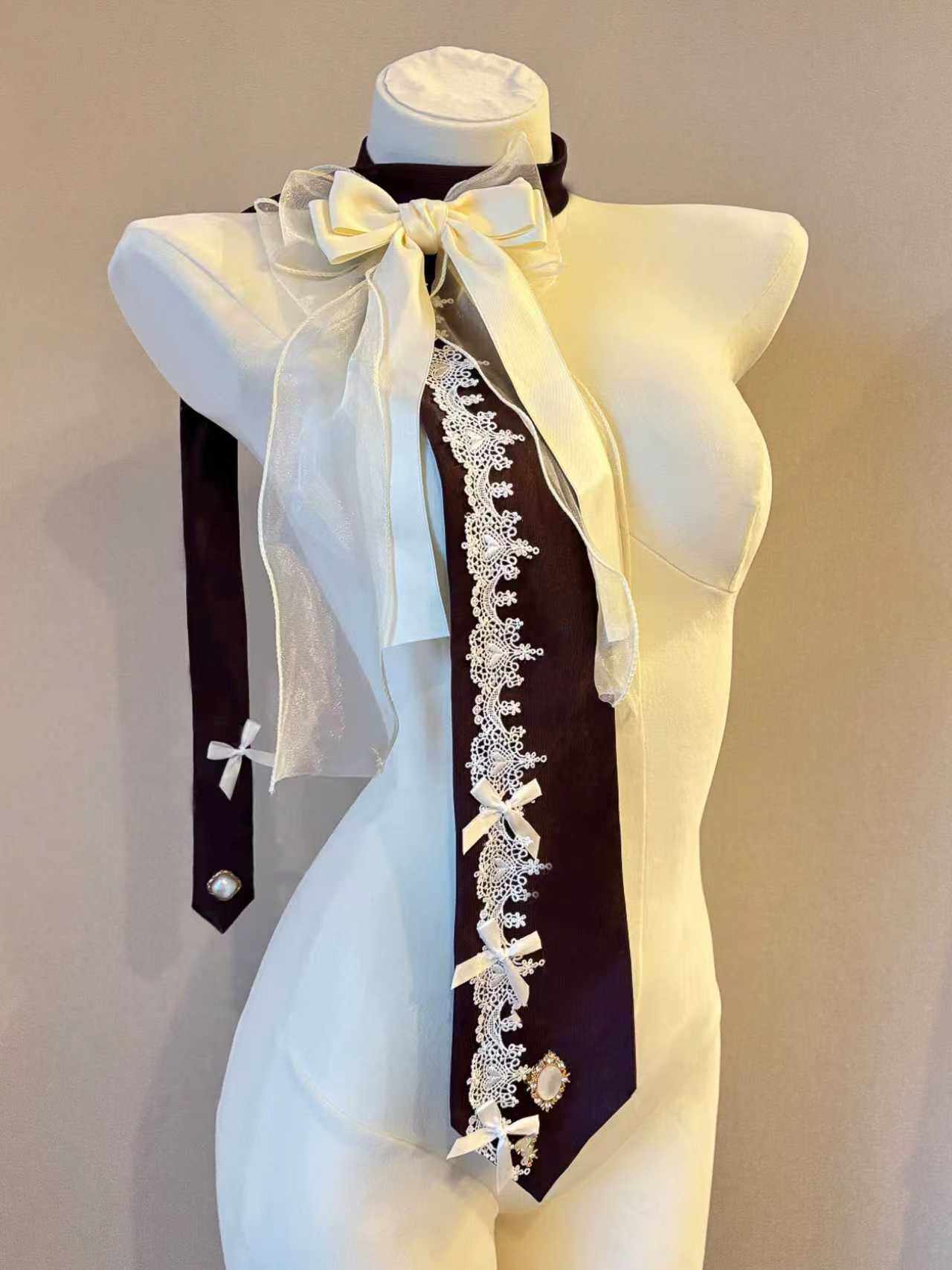 Niche Retro-Style White Lace Bow Tie with a High-End Feel, Baroque Bow Tie, Unique Vintage Accessory