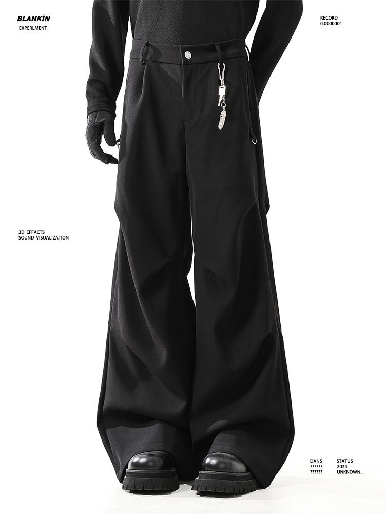 Blankin American-Style Pleated Cleanfit Commuter Suit Pants for Men 2025 Drapey Flared Black Suit Trousers