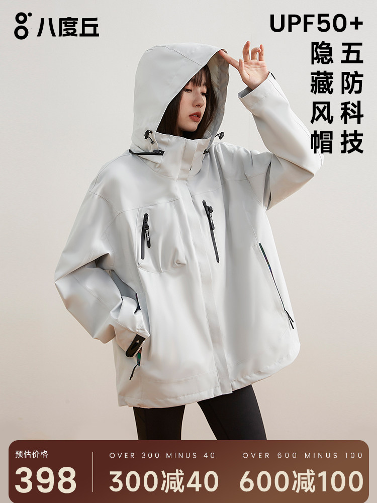 Hytemoly Wide-Shoulder Stand-Up Collar Ribbed Waist-Cinching Hem Vintage Loose Jacket Slimming Casual Versatile Coat Top