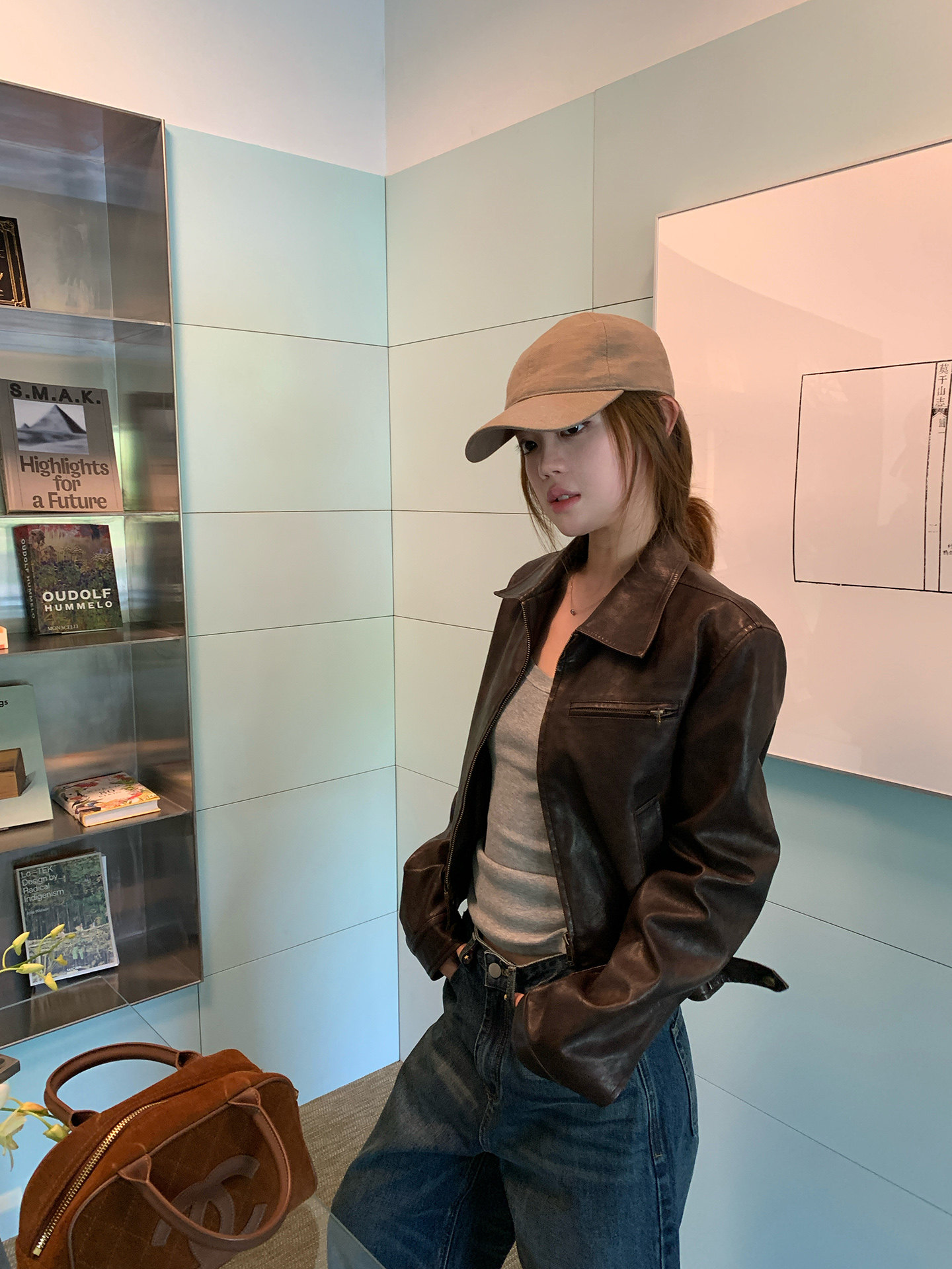 Yoyozizhi 2025 Cool and Stylish American Retro Short Leather Jacket for Women Early Autumn Biker Pu Leather Jacket
