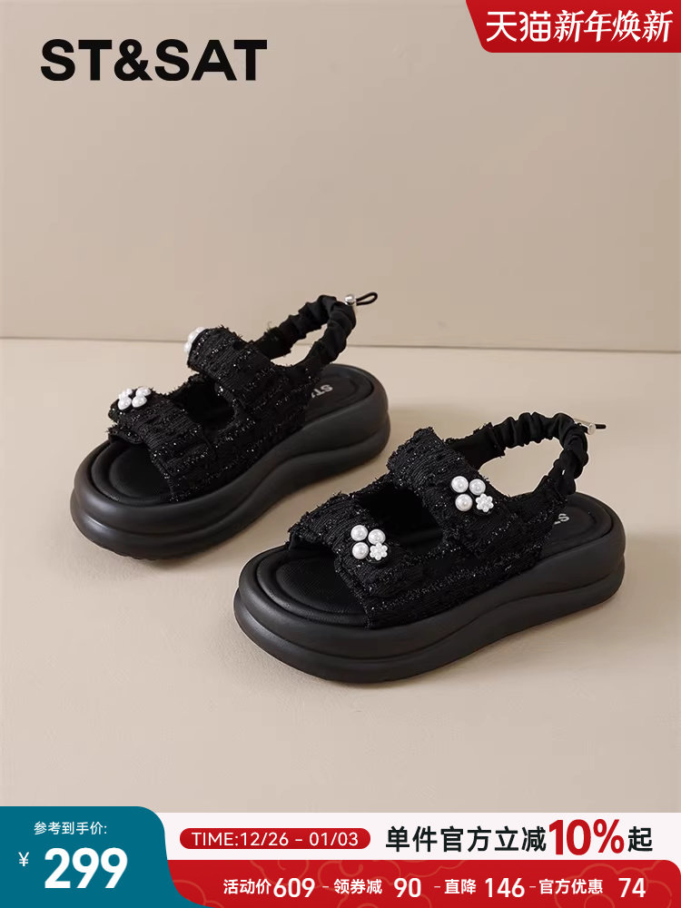 Saturday Fairy Style Sandals for Women, Thick Sole, 2025 New Summer Breathable, Pair with Skirts, Pearl Roman Beach Shoes