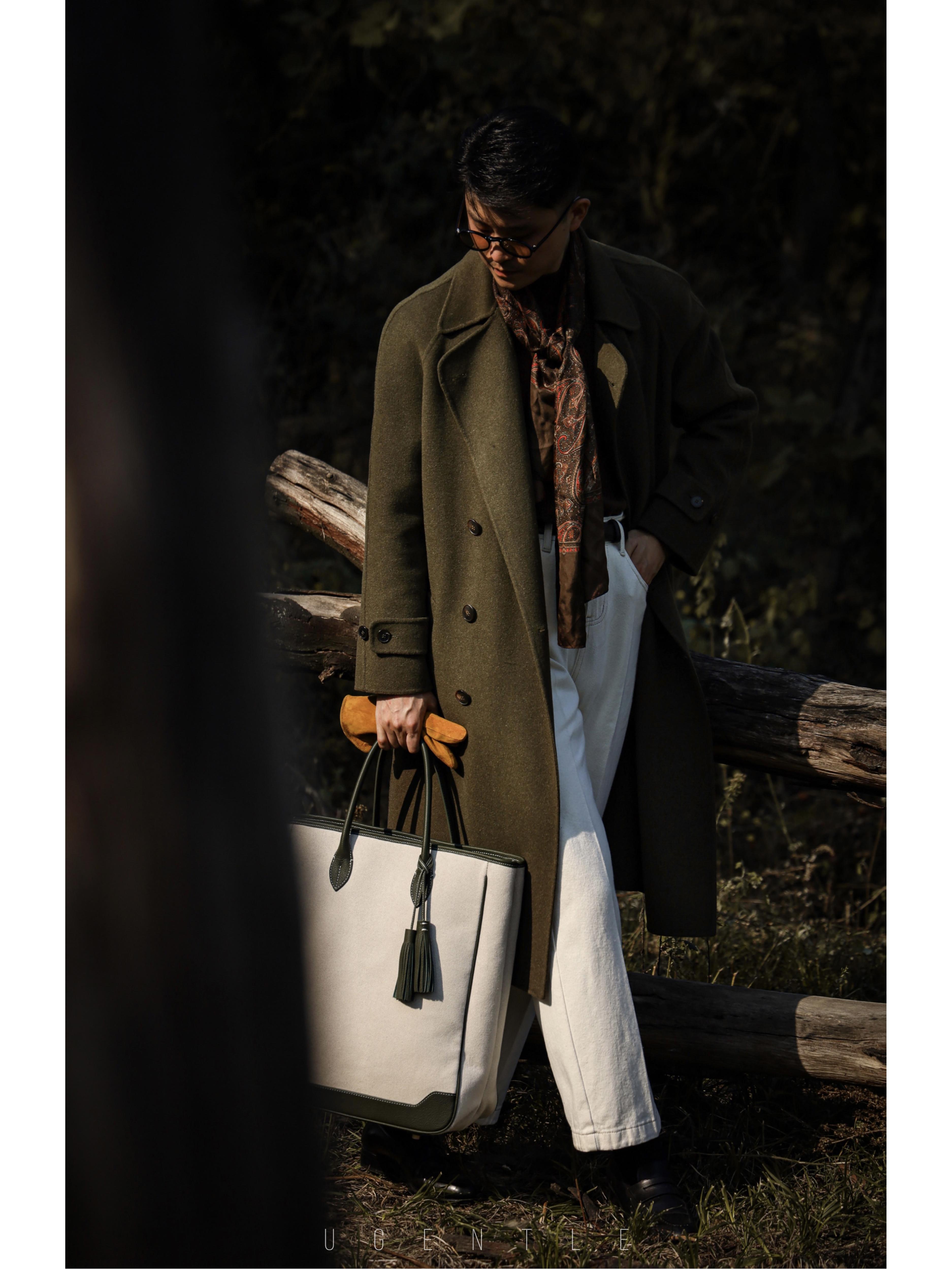 Jack & Jones Men's Wool Coat, Autumn and Winter, Wool Blend, Black, Casual, Quiet Luxury Style, Solid Color Coat