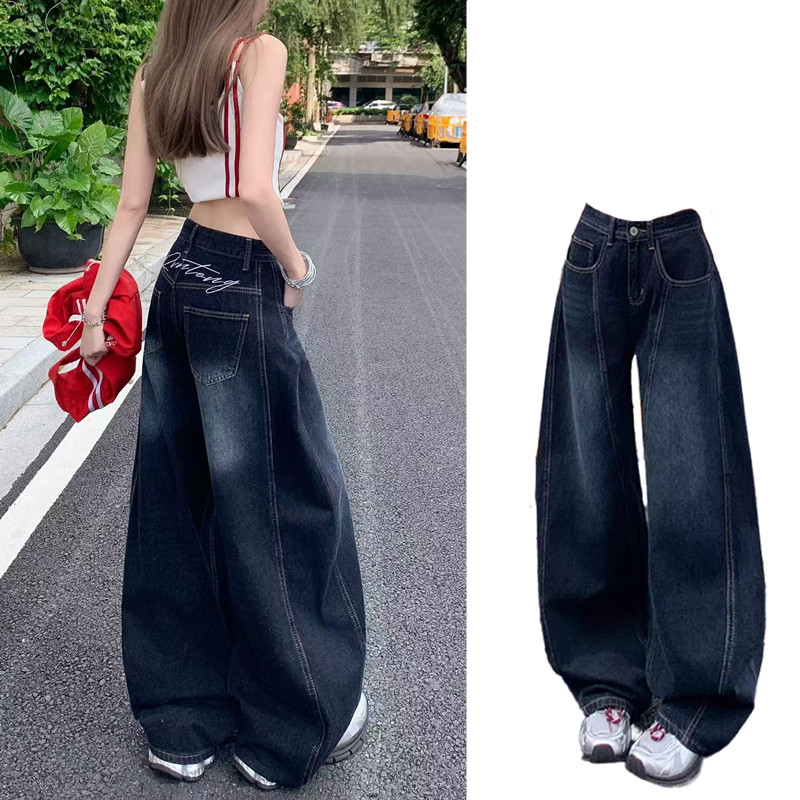 American Retro Embroidered Scimitar Jeans for Women, New Autumn Design, Straight-Leg, Loose, Slimming, Wide-Leg, Floor-Length Pants
