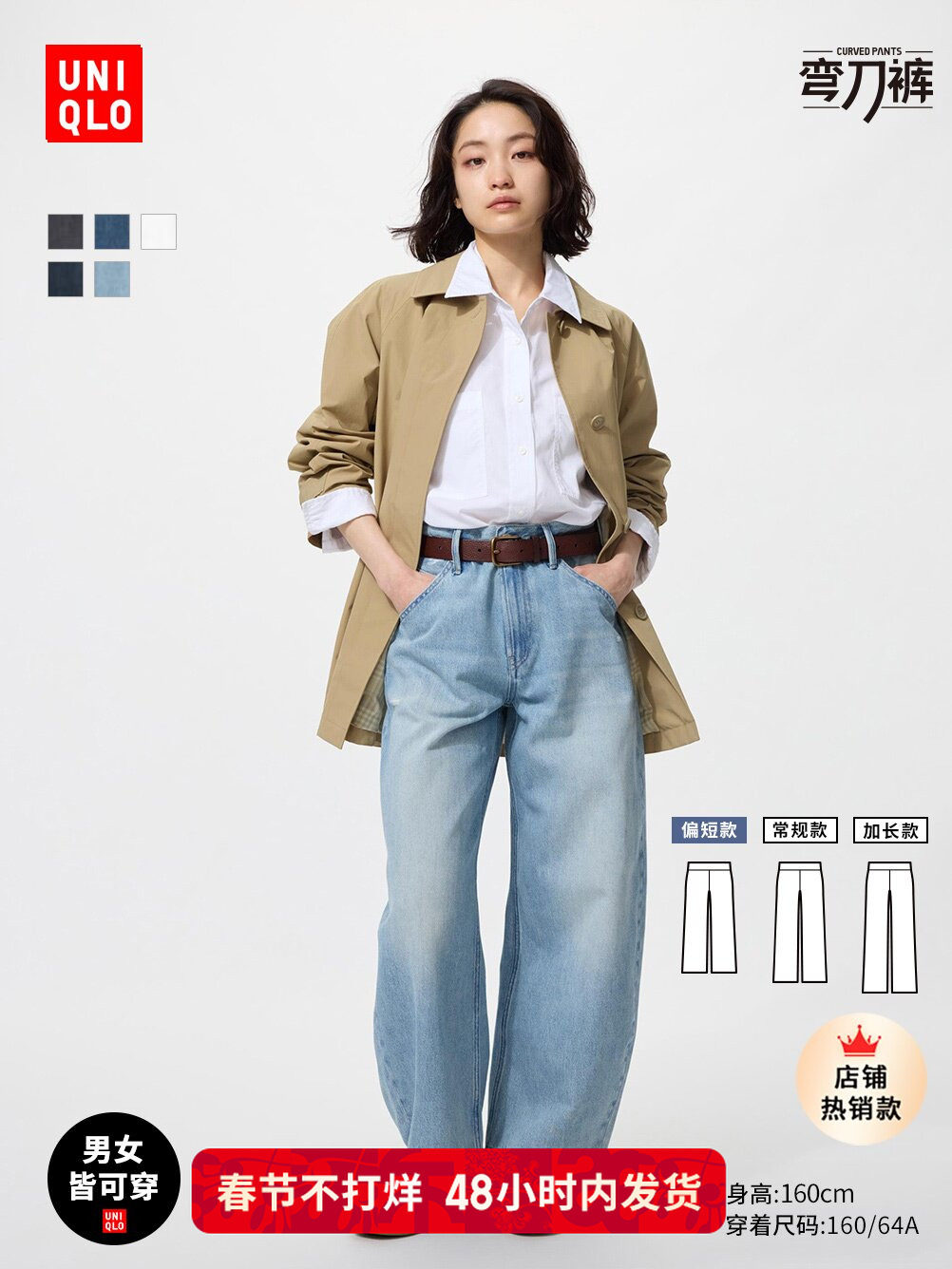 Shorter Style Uniqlo Women's and Men's Loose-Fit Jeans/Curved Hem Pants 484808