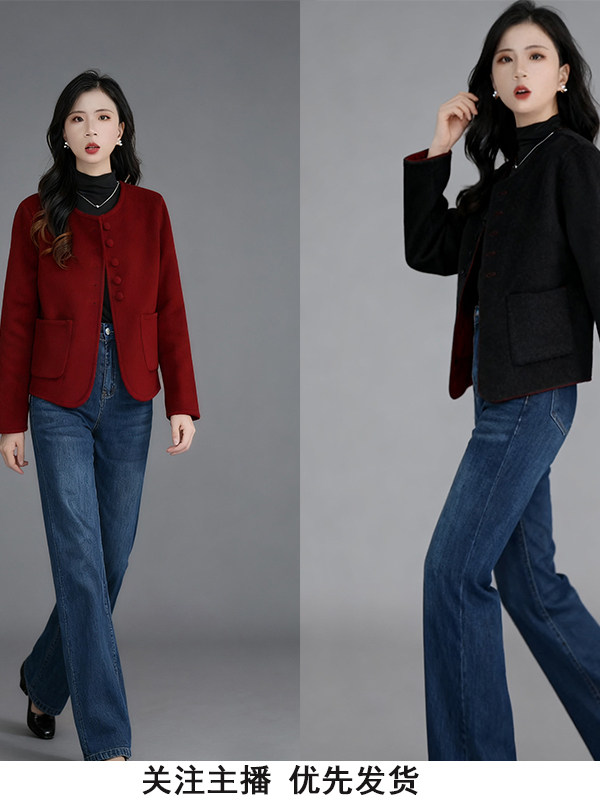 Cat Realm Exclusive High-Waisted Navy Blue Slim-Fit Thin Drape No-Iron Flared Extended Trousers