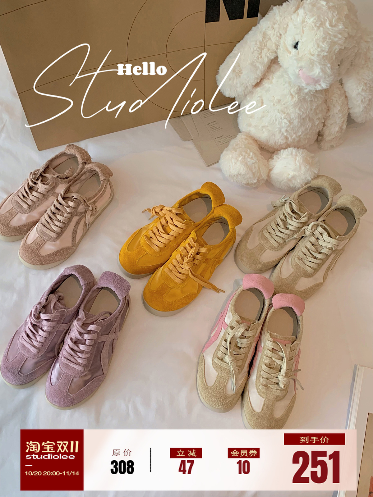 Grape Mom Studiolee New Retro Stylish Color-Block Lace-Up Casual Versatile German Training Shoes for Women Spring