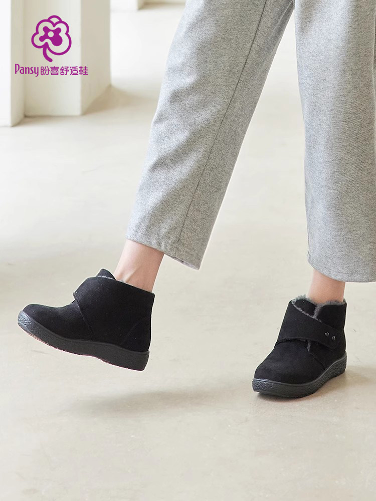 Pansy Japanese Winter Women's Shoes Thickened with Fleece Wool Snow Boots Non-Slip Short Boots High-Top Cotton Shoes