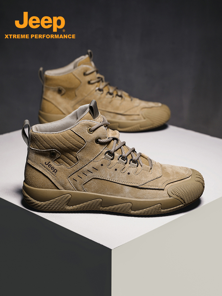 Jeep High-Top Men's Shoes 2025 Autumn and Winter New Mid-Top Work Boots Genuine Leather Non-Slip Outdoor Hiking and Mountaineering Boots