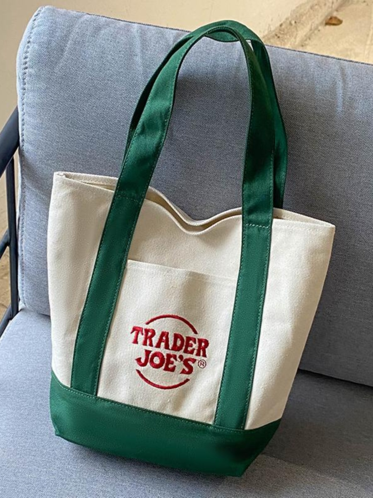 American Trendy Brand Trader Joe's Fashion Canvas Shopping Bag Color-Blocked Shoulder Bag Embroidered Tote Bag
