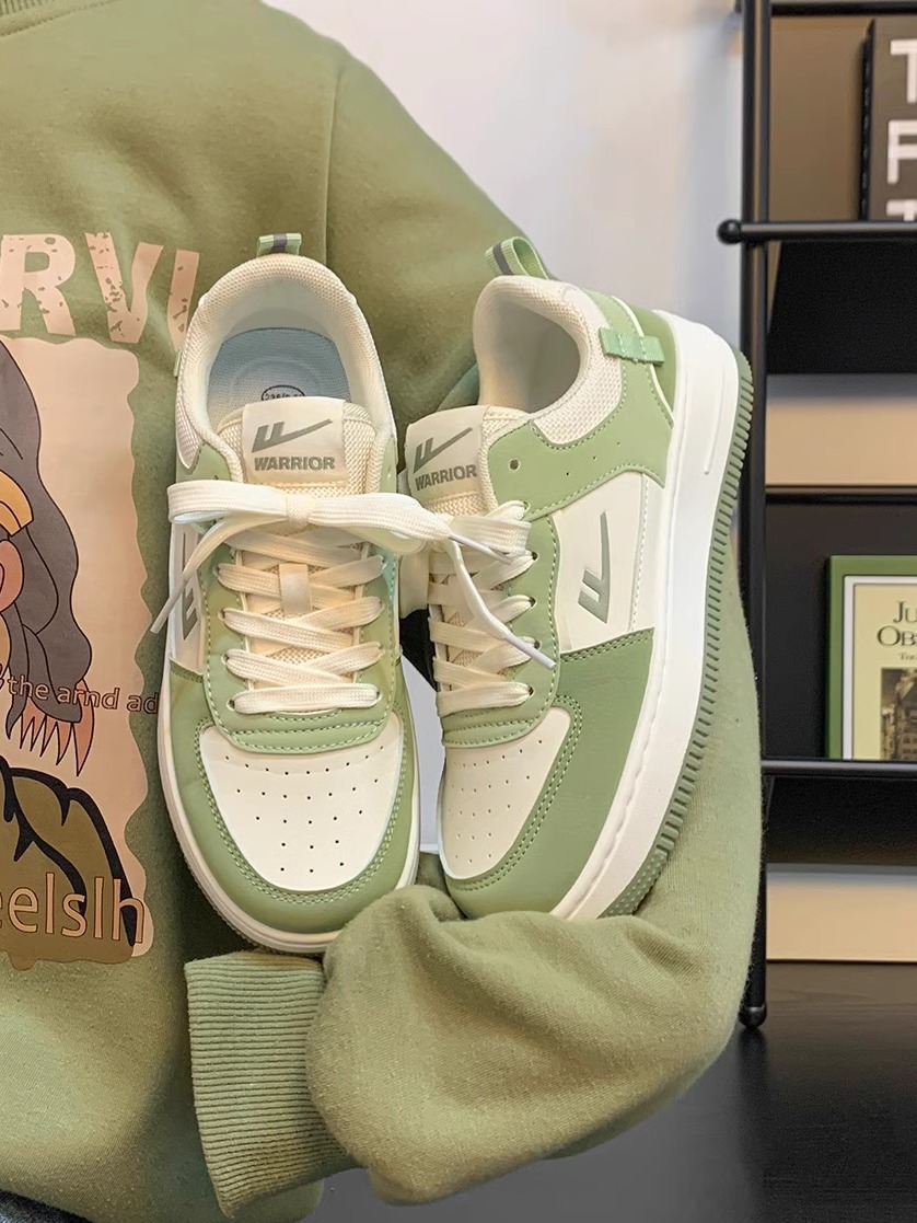 Pull-Back Matcha Green Shoes for Women, Autumn 2025 New Versatile Popular White Shoes, Niche Couple Student Sneakers