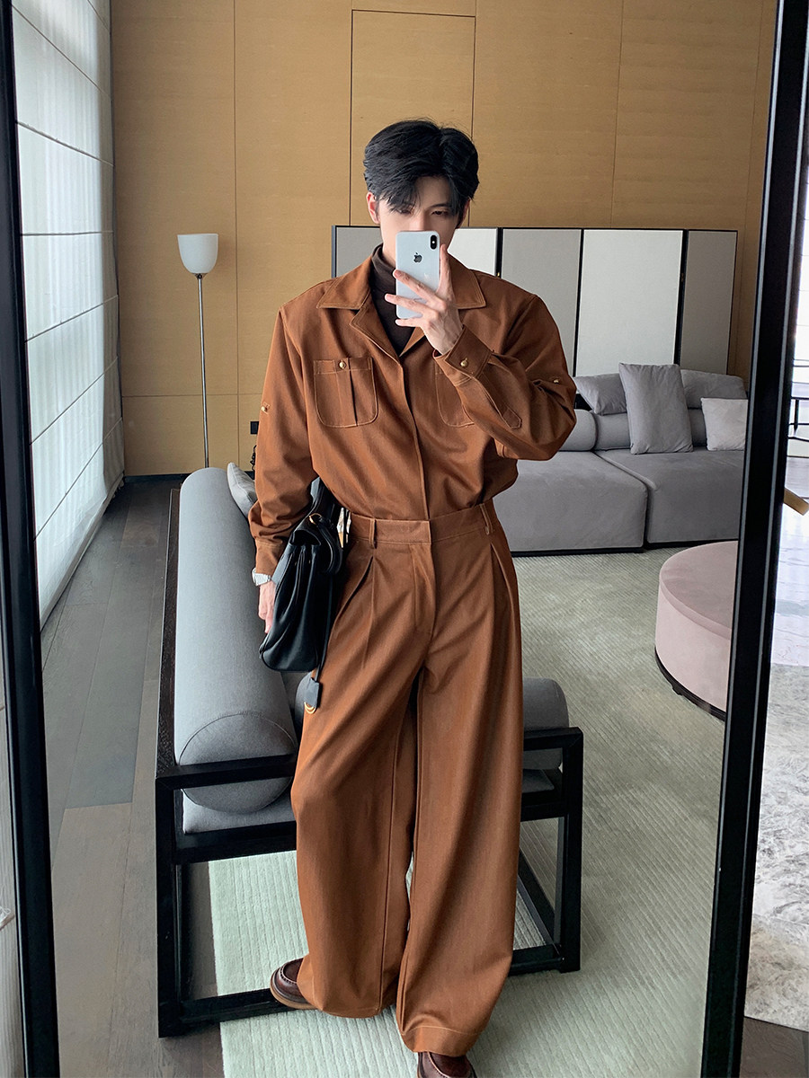 Hualun Celebrity Style Outfit, High-End Fashion Suit, Spring and Autumn Casual Shirt, Complete Set, Handsome Combination for Men