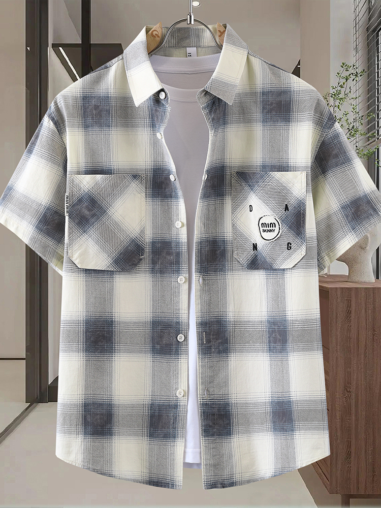 Plaid Short-Sleeved Shirt Men's Summer Youth Trendy Korean Style Pure Cotton Half-Sleeved Shirt Junior High School and High School Student Inch Shirt