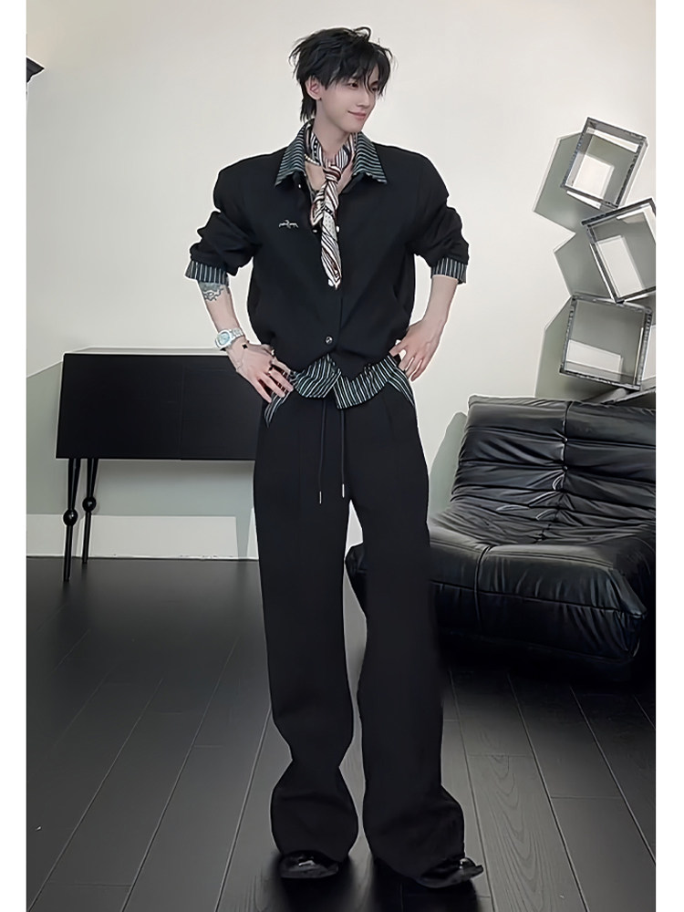 Fake Two-Piece Striped Patchwork Cardigan Sweatshirt for Men, Cool and Stylish Outfit Set, Autumn and Winter Men's Clothing, Complete Set with a Handsome Look