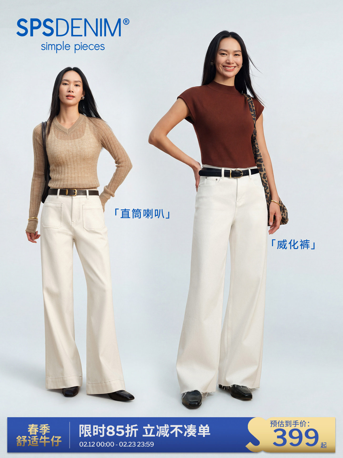 【Very Basic White Pants】Simplepieces All-Season Loose Fit Sps Jeans for Women, Slimming, Pear-Shaped Body Type