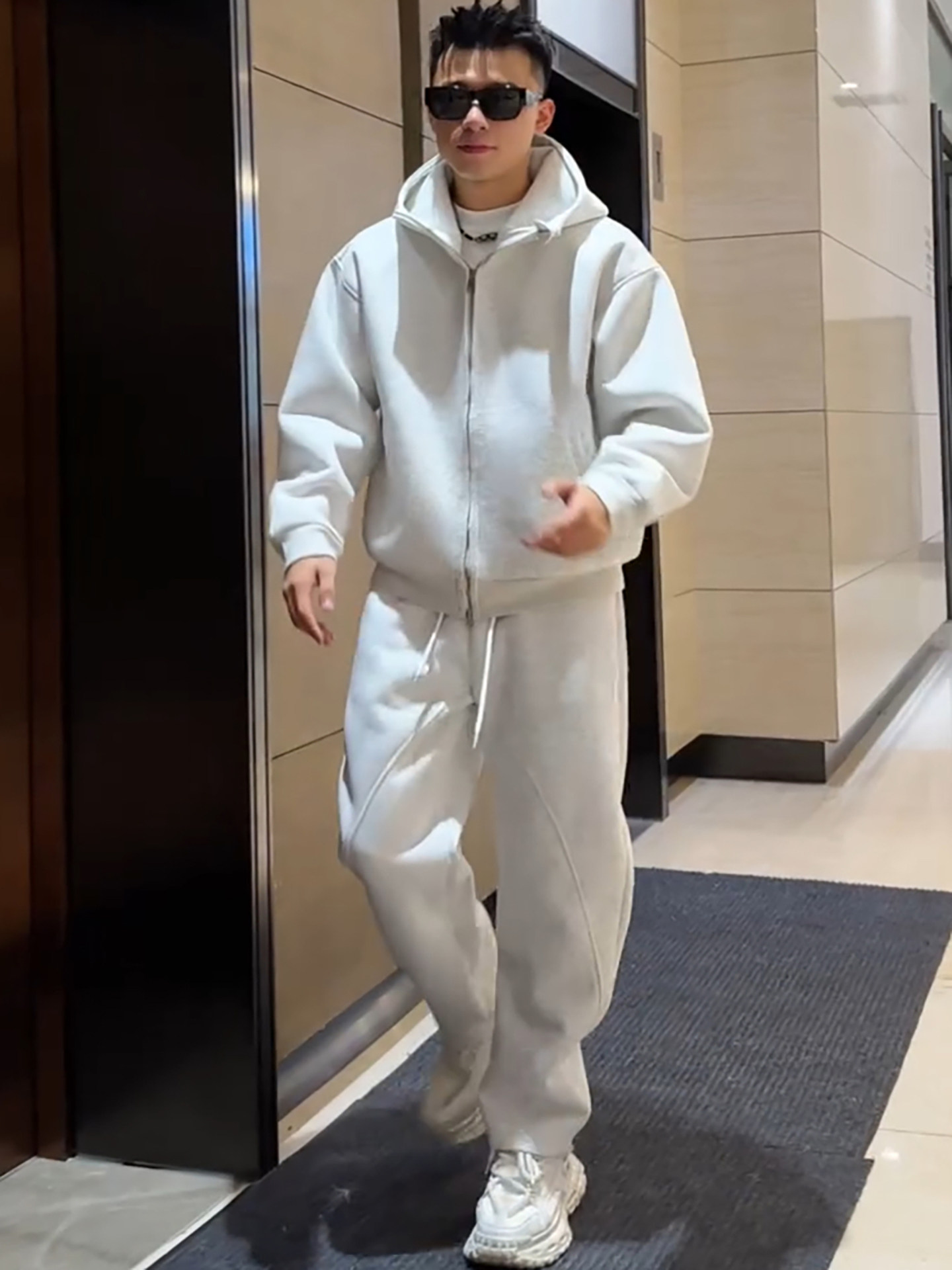 Korean Uamtor Men's Suit Autumn and Winter Version with Fleece Lining, Thickened Casual Sports Loose Hooded Jacket and Straight-Leg Sweatpants