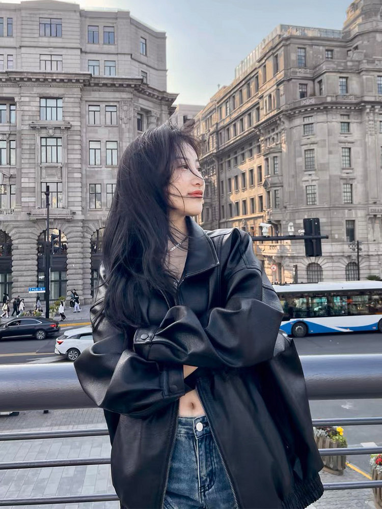 Elegant and Refined~Row Italian Kid Leather Suede Old Money Style Stand Collar Jacket Fashionable Leather Coat