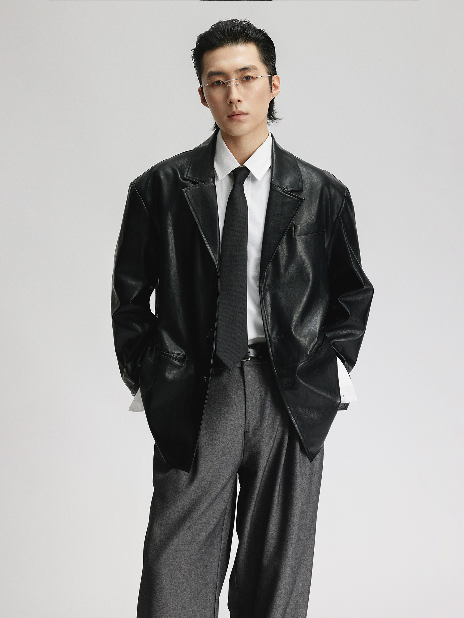 Miki Gongbai Japanese Retro Leather Suit Jacket for Men, High-End Feel, Loose Casual Lapel Jacket, Simple and Trendy