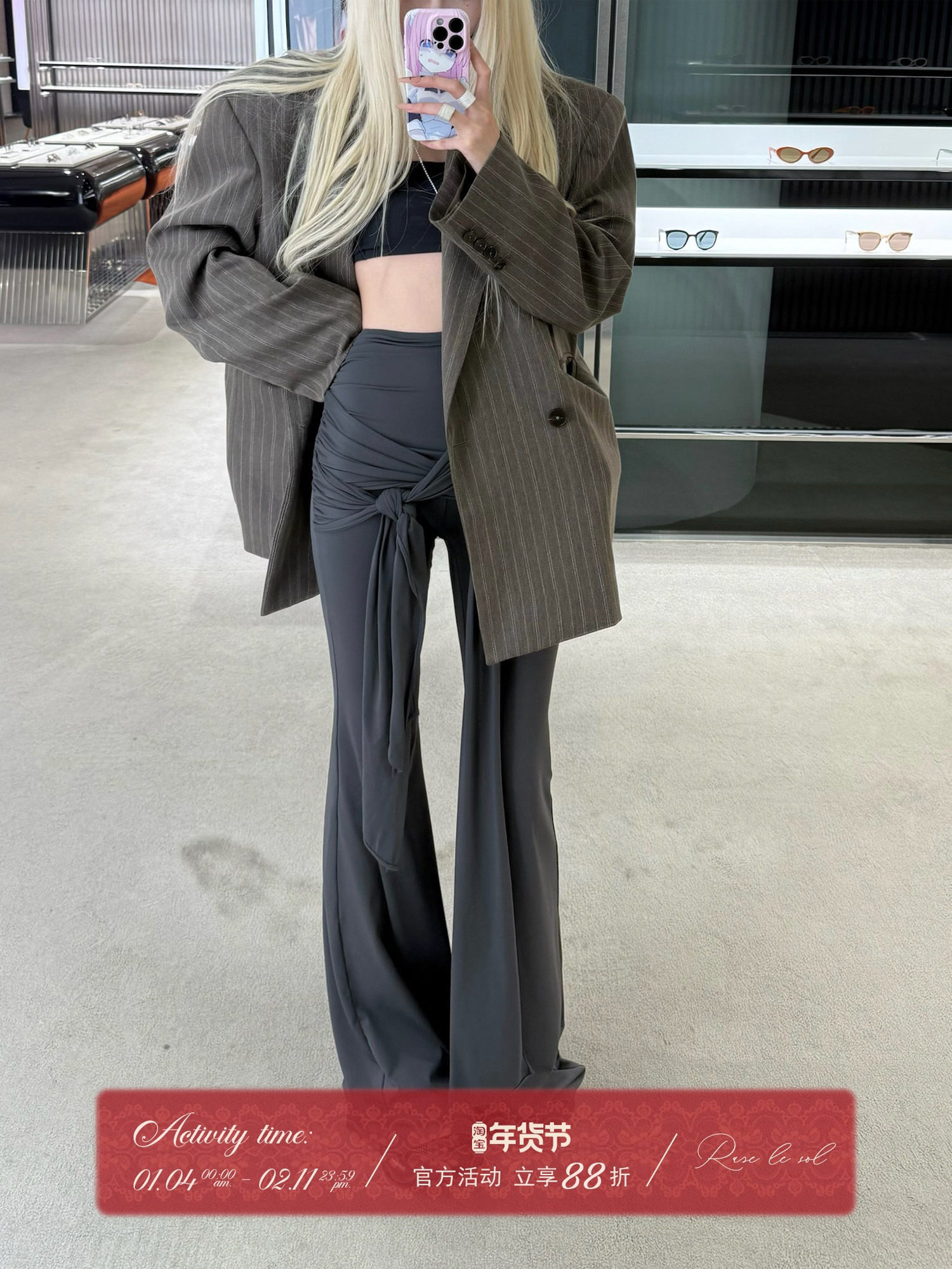 Oclin 100% Wool Luxurious Full Lining Straight-Leg Loose Fit Trousers Row Style Purple Label Series