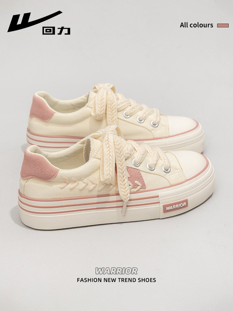 Pull-Back Canvas Shoes for Women, 2026 Spring and Summer New Versatile Breathable Thick-Soled White Shoes, Student Sports Sneakers