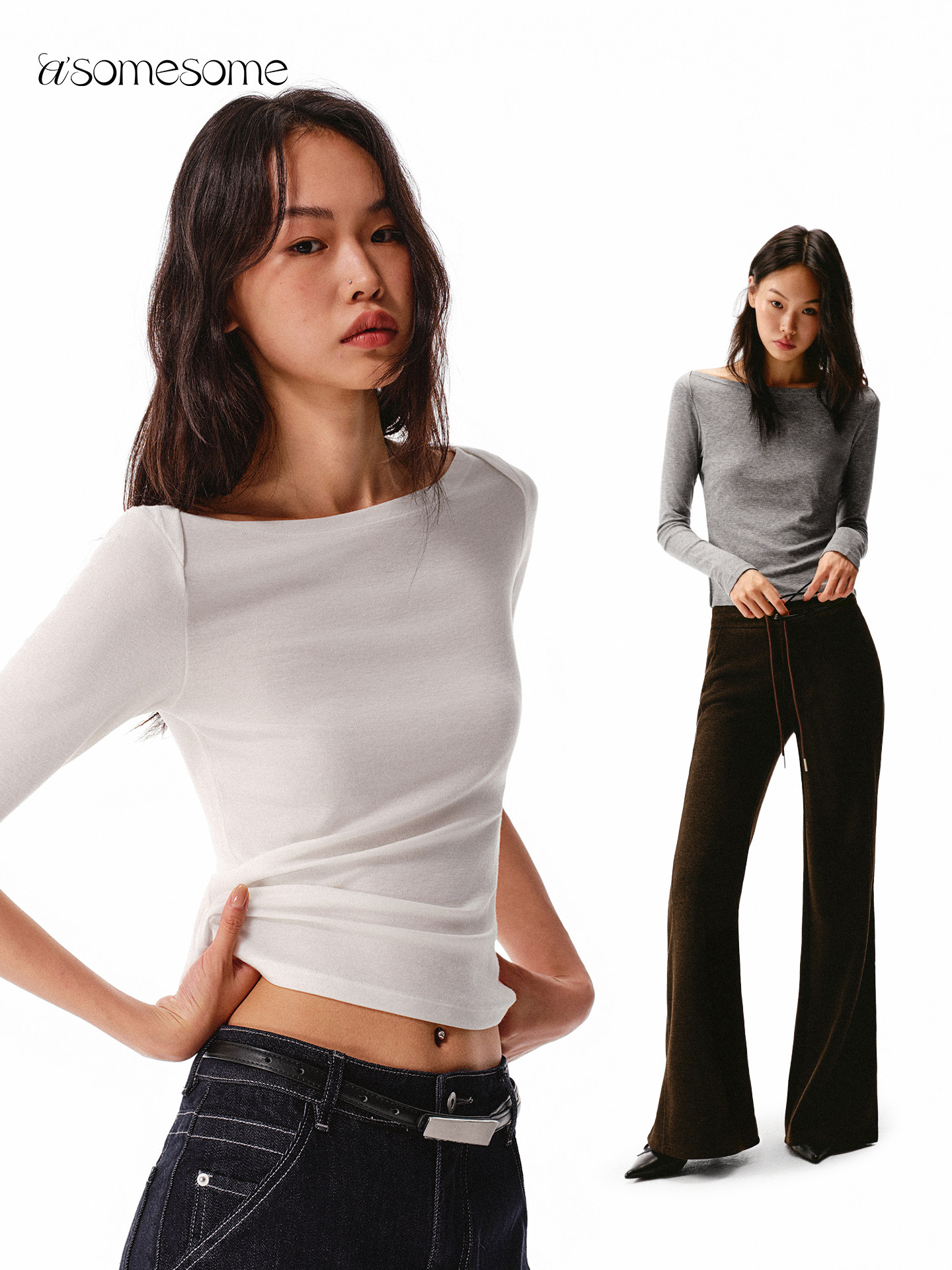 Asomesome Tencel Wool Boat Neck Tight-Fitting Long-Sleeved Women's Autumn Inner Wear Mid-Sleeve White Bottoming Shirt Knitted Top