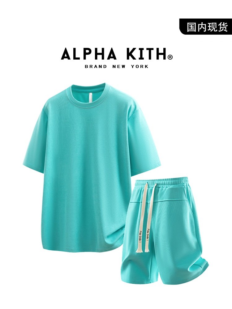[Domestic Stock] Alpha Kith Fashionable High-End Casual Suit Men's Short-Sleeved Couple Sports Suit