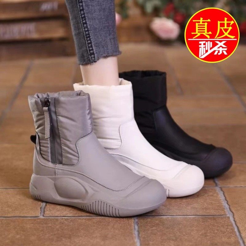 Clearance Genuine Leather Designer Shoes Waterproof down Fabric Snow Boots for Women 2025 Winter Non-Slip Fleece-Lined Thickened Northeast Cotton Shoes