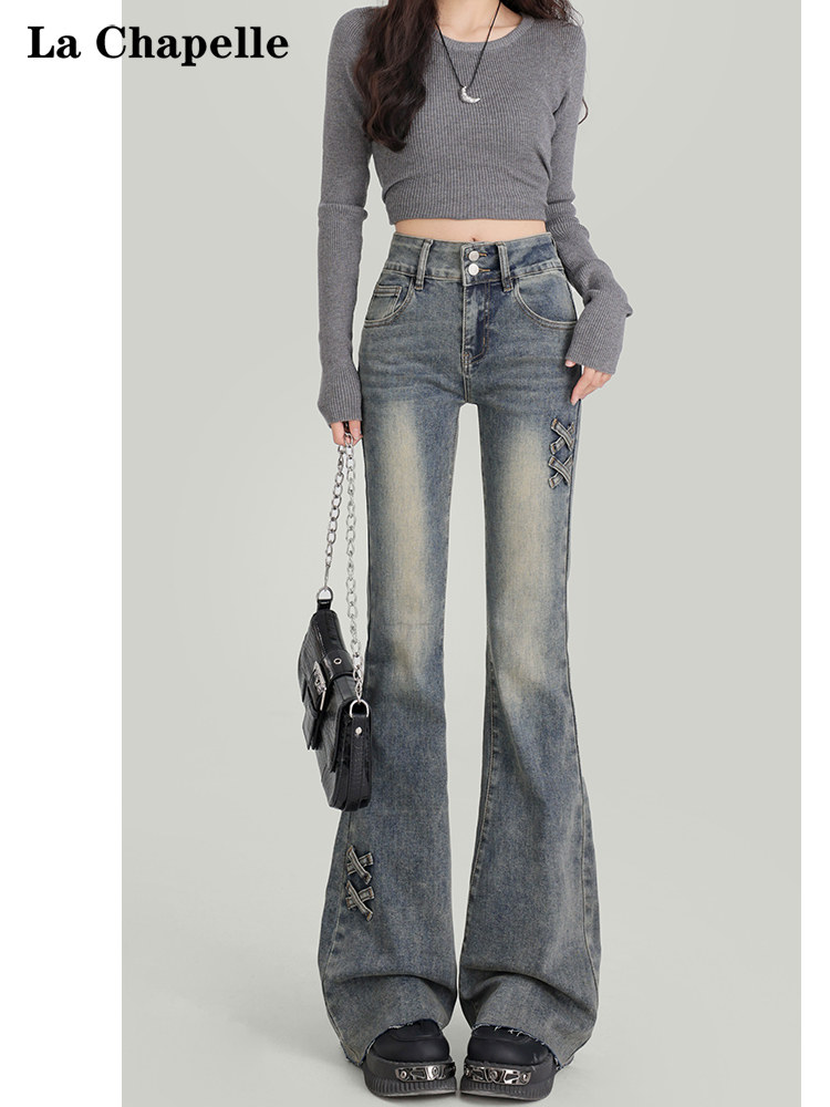 La Chapelle Fleece-Lined Flared Jeans for Women 2025 New Popular Autumn and Winter High-Waisted Slim-Fit Skinny Pants for Petite Figures