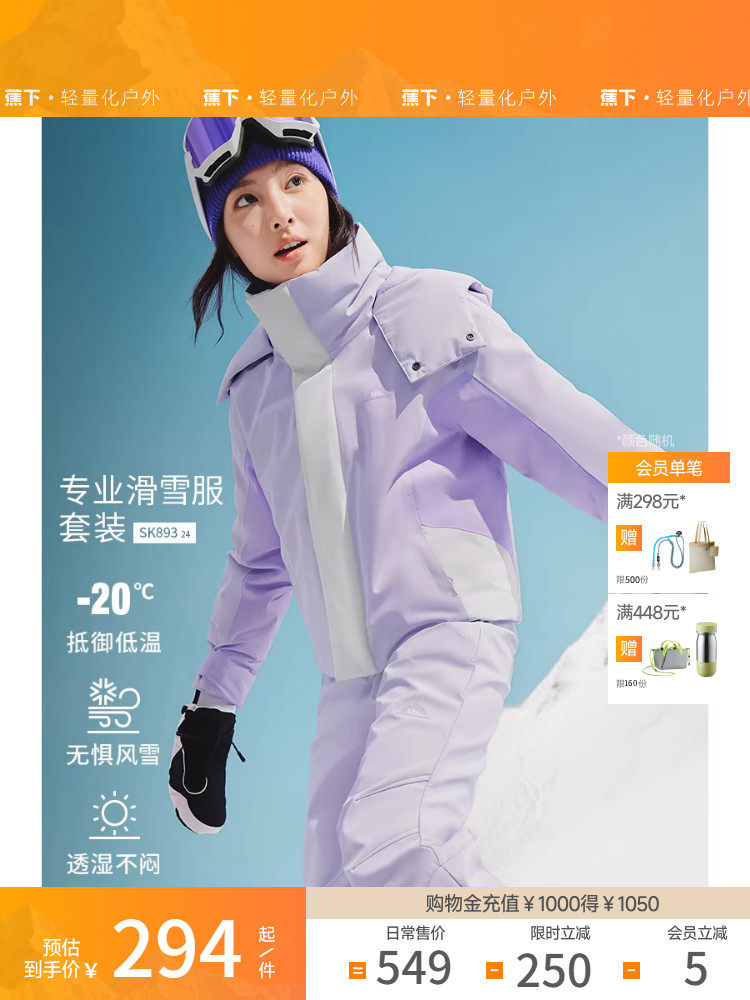 Jiaoxia Women's Ski Suit Sk893 down Jacket for Single and Double Board, Waterproof and Warm, Complete Ski Equipment Set